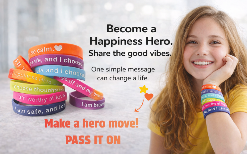 Share some good vibes around with the Happiness Hero Wristbands